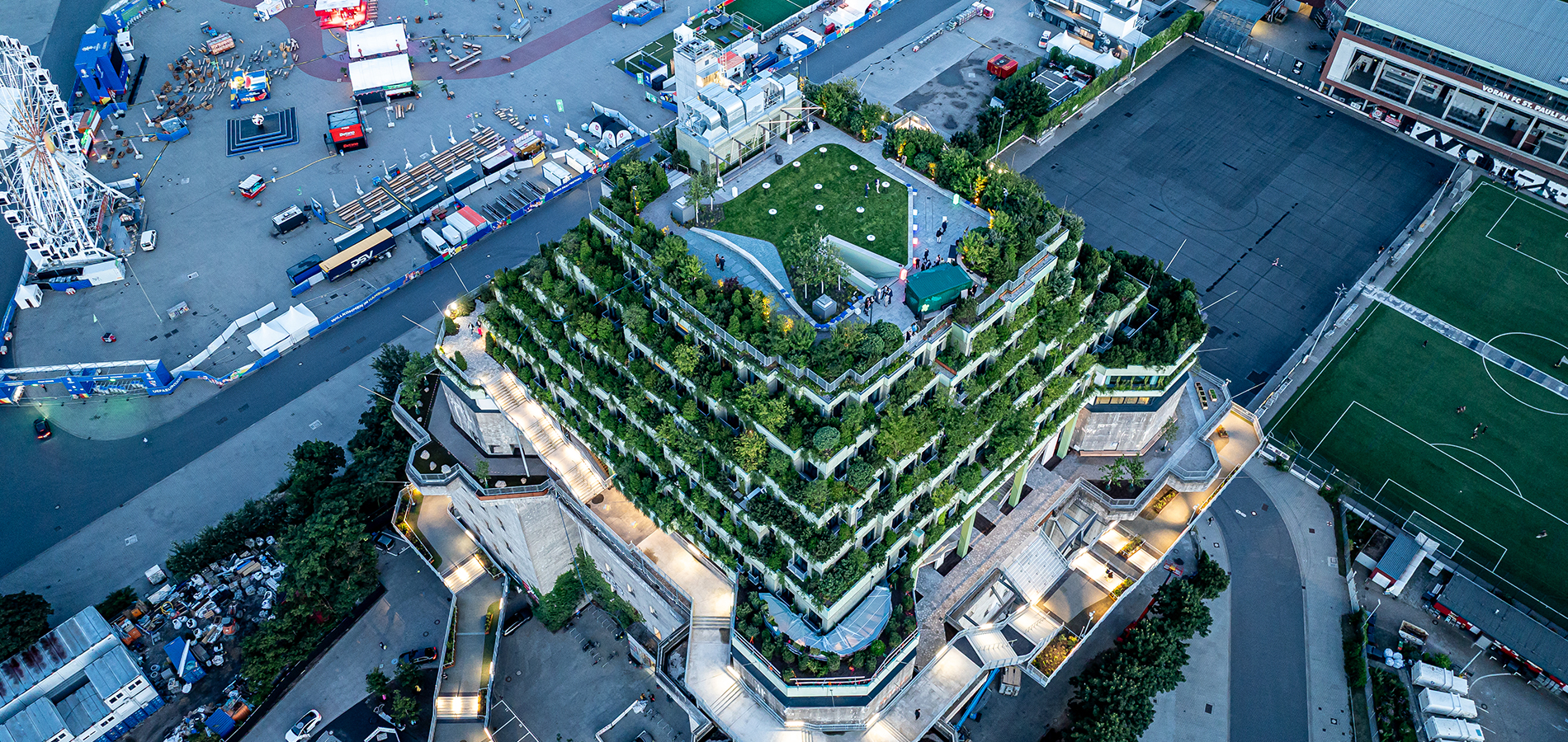 To ensure your guests have the best possible experience—whether with refreshing drinks at summer parties or fruity mulled wine at Christmas celebrations—your event at the Georg-Elser-Halle can be seamlessly combined with the rooftop garden of the Flakbunker. This green space not only invites guests to network and linger, but also offers a breathtaking view of Hamburg.