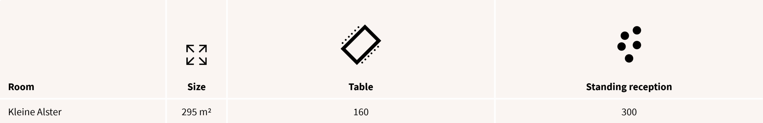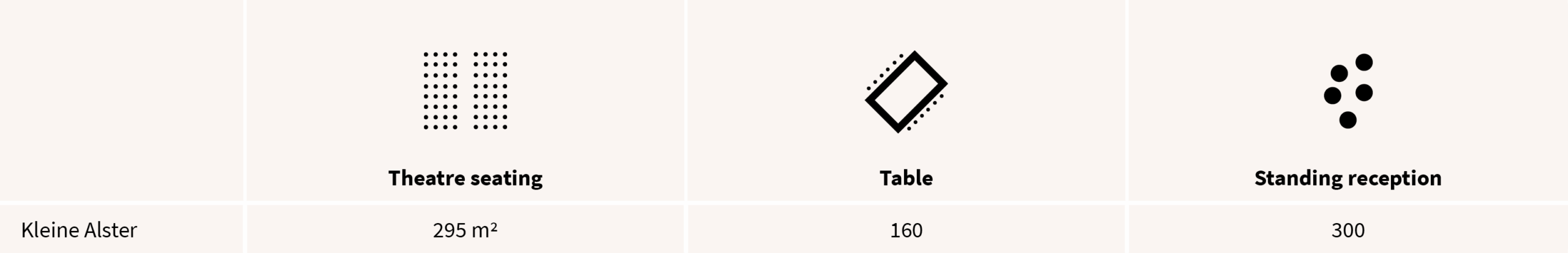 The modernized premises of this listed location offer space for up to 300 people and can be flexibly adapted to any type of event. Whether private or business, with DJ or presentation technology, seated dinner or stylish finger food buffet - at the Kleine Alster your ideas will be realized professionally and individually.